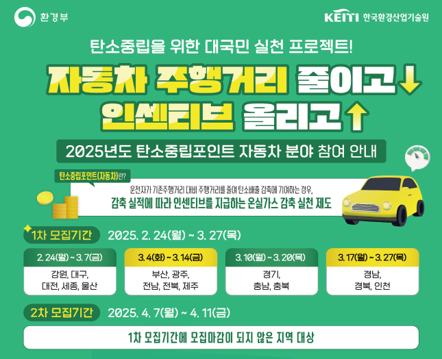 이런 흐름 속에서 조금 더 일찍 시작한 사람일수록 더 많은 혜택을 누릴 수 있겠죠? 탄소중립 실천포인트 자동차 제도도 마찬가지예요. 지금 등록하고, 일상 속에서 환경도 챙기고 혜택도 받는 일석이조의 선택, 지금부터 함께해 보시는 건 어떨까요? 😊