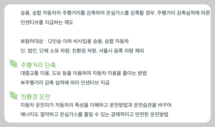 - 탄소중립 실천포인트: 차량 운행만으로 연간 최대 20만 포인트