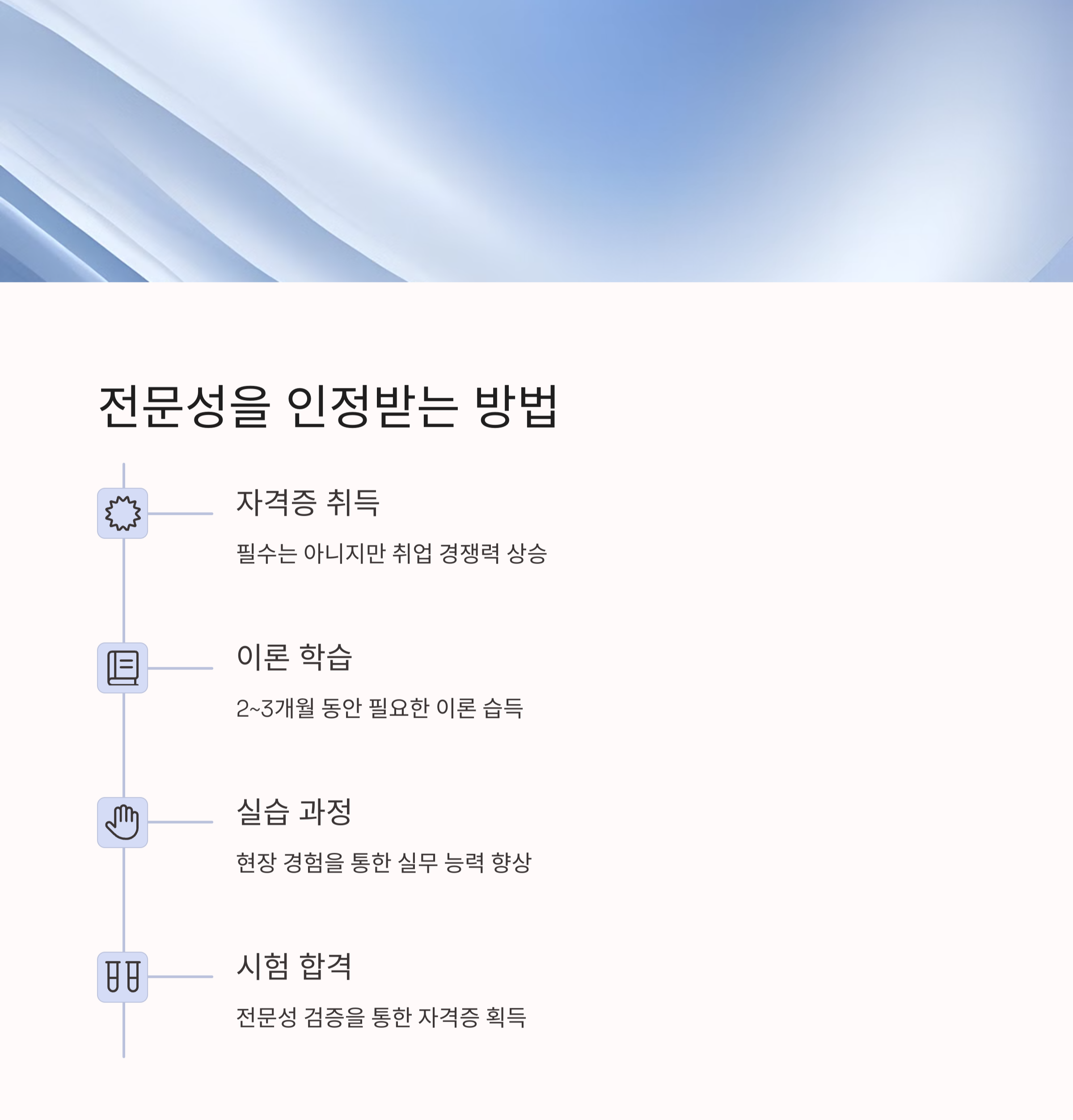 - 자격증 취득 후 현장 실습 또는 취업 준비